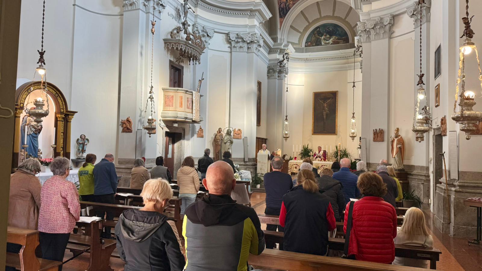 Nel corso della celebrazione, don Geretti ha invitato i presenti a vivere questo tempo come un momento di profonda comunione ecclesiale: «Siamo qui, in unione spirituale tra noi e con tutta la Chiesa riunita a Roma, per pregare per il dono della pace in questo mondo tribolato e confuso, nel quale ci troviamo a vivere e nel quale crescono i nostri figli».