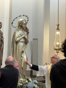 Un invito, dunque, a coniugare testimonianza e interiorità, consapevoli che la vera pace nasce da un cambiamento profondo del cuore. La celebrazione si è conclusa in un clima di silenzio e affidamento, con i fedeli che si sono accostati all’immagine della Vergine per consegnarle, con semplicità filiale, le proprie intenzioni e speranze.