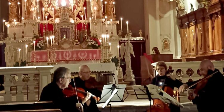 Si è aperto giovedì 3 aprile, nel Duomo di Tolmezzo, il solenne evento delle 40 ore, un momento di profonda preghiera e adorazione che vede esposto il Santissimo Sacramento in forma solenne, al centro di una straordinaria cornice artistica: la Macchina delle 40 ore. Questa imponente e suggestiva struttura, appositamente realizzata dagli “amici di Sant’Ilario” per l’occasione, incornicia con grande maestosità l’ostia consacrata, Corpo di Cristo, rendendo ancora più toccante l’esperienza di preghiera. A rendere l’atmosfera ancor più intensa, più di un centinaio di candele ardono attorno all’altare, illuminando la scena con una luce calda e mistica, che invita alla contemplazione e alla preghiera silenziosa.