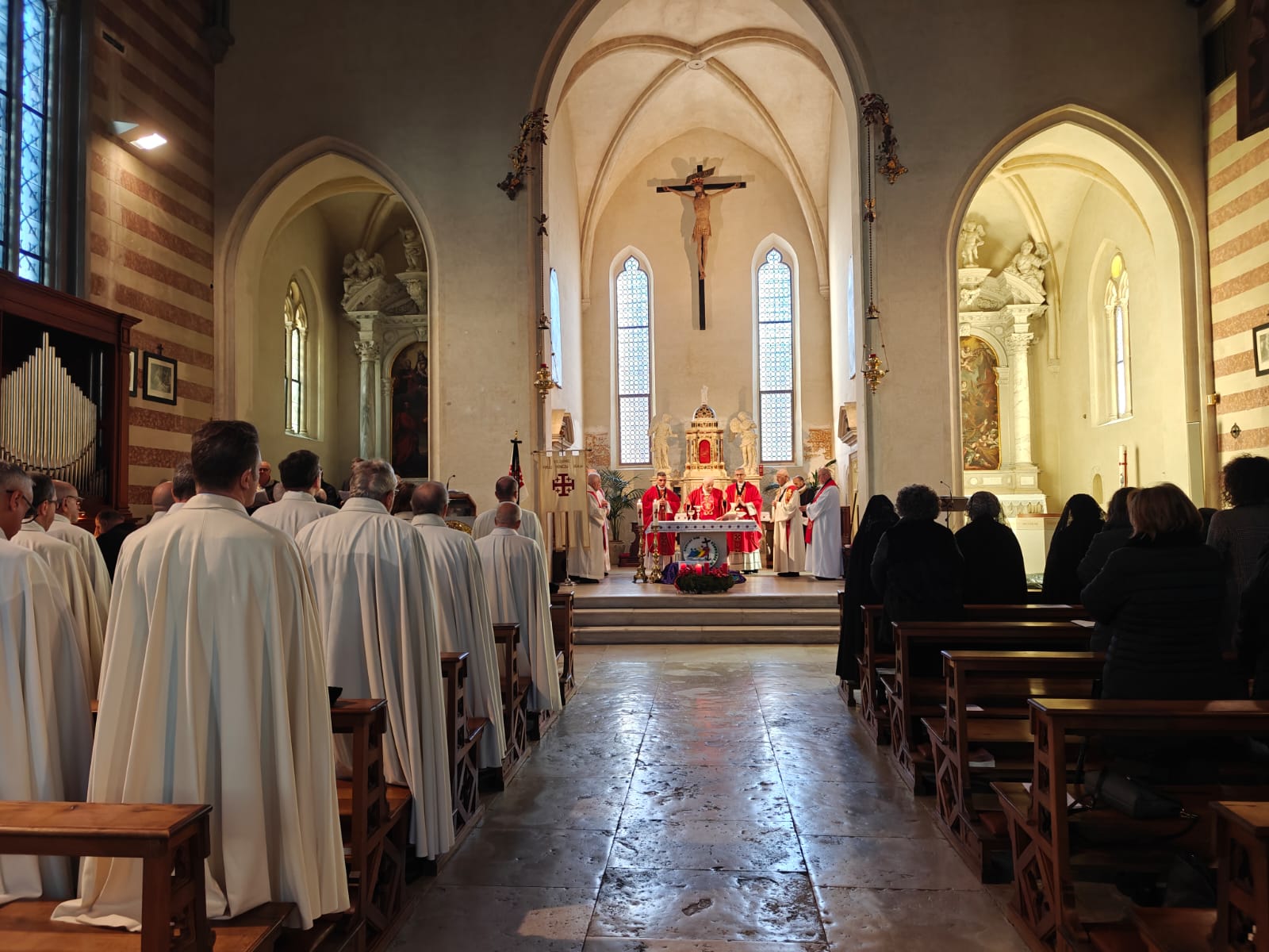 S.E. l’Arcivescovo emerito di Udine – nonché Priore della Sezione Friuli Venezia Giulia – Gr. Uff. Mons. Andrea Bruno Mazzocato, ha officiato la Santa Eucarestia in preparazione del Natale, concelebrata dai numerosi sacerdoti dell’Ordine e dal parroco ospitante Mons. Domenico Zannier.