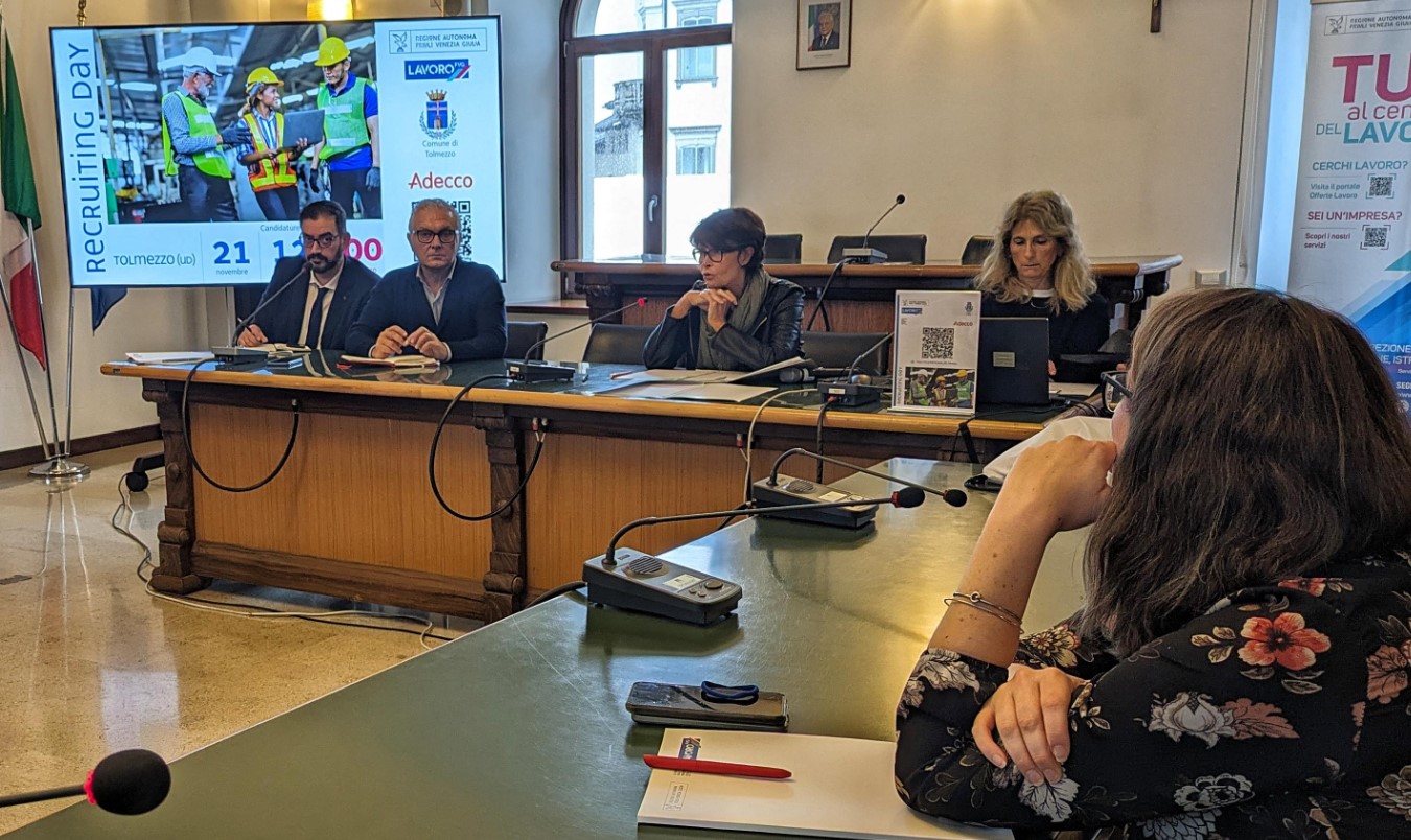 L’illustrazione si è tenuta nella sede del Municipio di Tolmezzo anche alla presenza del sindaco, Roberto Vicentini, e dei referenti delle aziende che ricercano personale. Il recruiting day è stato promosso dalla Regione in collaborazione con “Carnia industrial park” e l’agenzia per il lavoro “Adecco Italia Spa”, col patrocinio del Comune di Tolmezzo.