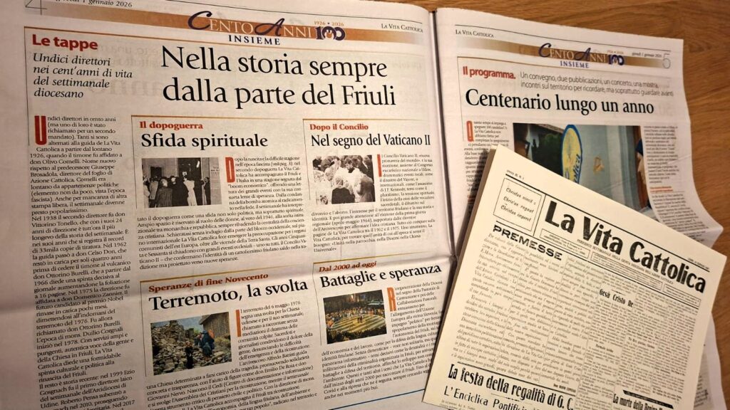 I lettori più attenti se ne sono subito accorti: sulla testata de La Vita Cattolica – e anche qui sul sito – è comparso un 100 accanto al nome del settimanale diocesano. Il 2026, infatti, è l’anno in cui La Vita Cattolica celebra i cento anni di pubblicazione settimanale. Per l’occasione, un intero anno sarà dedicato alle iniziative per celebrare questo primo secolo di informazione e cultura per «Il settimanale del Friuli».