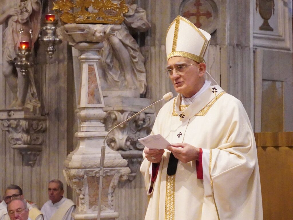 L’arcivescovo Riccardo Lamba durante l’omelia della Messa crismale