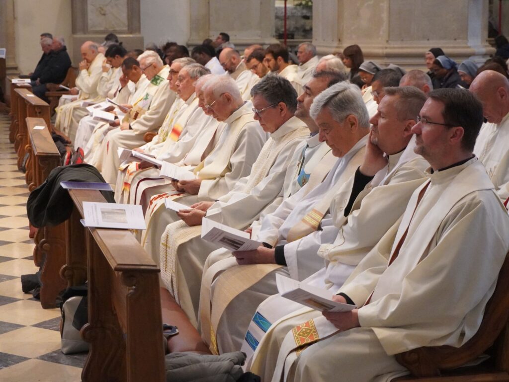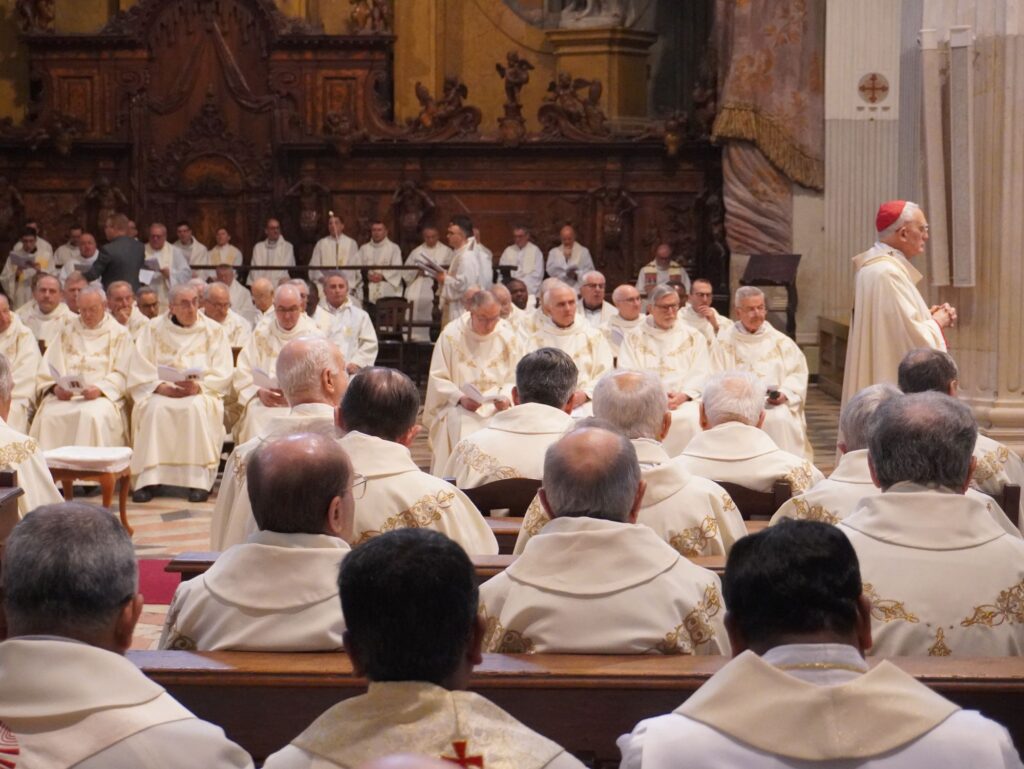 La celebrazione è proseguita come di rito: con il rinnovo delle promesse sacerdotali, la benedizione degli Oli santi, la Liturgia eucaristica. Sullo sfondo, le note del coro – composto quasi esclusivamente da preti – ha accompagnato i diversi momenti: «Gesù Cristo ha fatto di noi un regno… e ci ha costituiti sacerdoti per Iddio, Padre suo», cantano i ritornelli. È una Chiesa che cammina, preti, religiosi e laici, e che nella sua molteplicità di ministeri e carismi si avvia, passo dopo passo, caduta dopo rialzata, verso la santità. «Credo la Chiesa…»