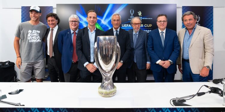 La UEFA Super Cup, assieme a tutte le iniziative legate all’evento che per la prima volta si disputerà in Italia da quando il trofeo si assegna in gara secca, è stata presentata lunedì 30 giugno allo Stadio Friuli, nella conferenza stampa a cui hanno partecipato il presidente della Regione Friuli-Venezia Giulia Massimiliano Fedriga, il sindaco di Udine Alberto Felice De Toni, il direttore generale dell’Udinese Calcio Franco Collavino e il presidente della FIGC e primo vicepresidente UEFA Gabriele Gravina.