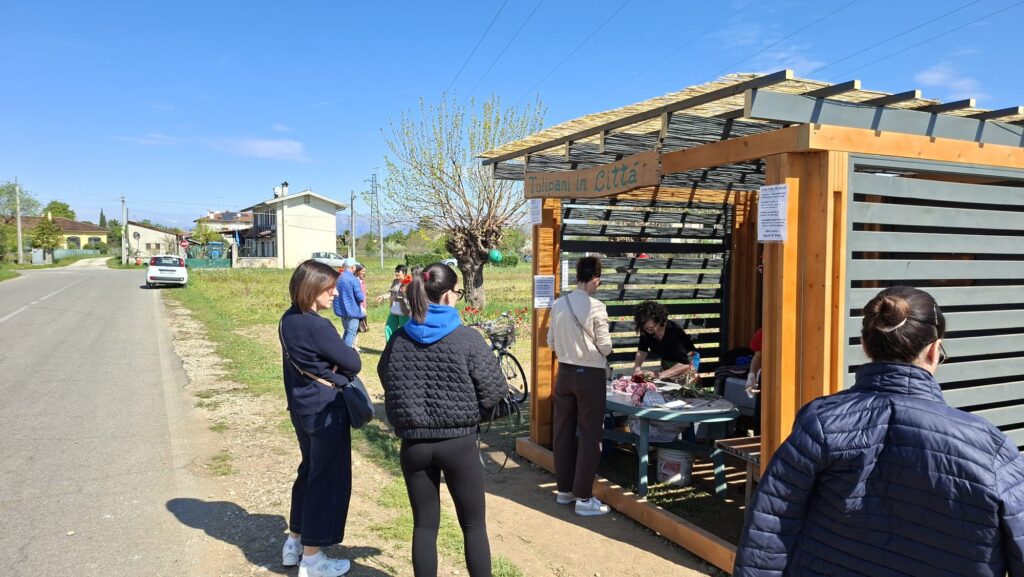 Coloratissimi Triumph, Darwin, Pappagallo e molti altri tulipani. Olanda? No. Ci troviamo a Laipacco, frazione a sud-est di Udine, dove le case sfumano gradualmente verso la campagna; in via Montelungo, una fila di auto parcheggiate e molte persone ai bordi della strada, appresso a una piccola casetta appositamente realizzata. Sullo sfondo, numerosi coloratissimi filari di petali danno vita a “Tulipani in città”, iniziativa della famiglia Del Gobbo che da mesi sta preparando il terreno – letteralmente – con migliaia di bulbi di tulipani. Tra i quali si può passeggiare e scegliere i colori, le forme, le striature da portare a casa.