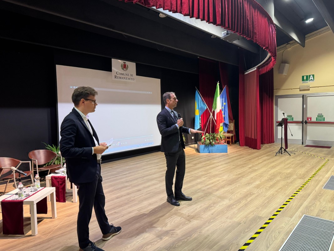 Presenti, all’evento, fra gli altri il sindaco di Remanzacco, Daniela Briz, Pauli Malsiner, legale rappresentante di Mse Solar e Johann Baptist Gregori presidente del Consiglio di amministrazione di Envalue Italia srl.