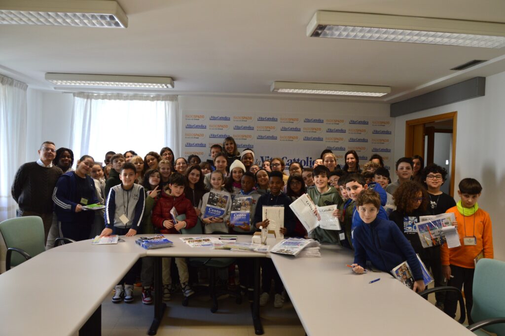 Come si scrive un articolo? Dove si trovano le informazioni? È pericoloso fare il giornalista? Che titolo di studio ci vuole? Qual è l’intervista più emozionante che ha fatto? Sono alcune delle domande che 53 alunni delle classi Quinte A, B e C della Scuola primaria Ippolito Nievo di Udine hanno rivolto al giornalista Stefano Damiani che li ha accompagnati, giovedì 25 febbraio, nella visita alla sede de la Vita Cattolica. L’incontro è stato l’occasione anche per raccontare ai ragazzi la lunga storia del settimanale diocesano che quest’anno festeggia e 100 anni e per donare loro la copia anastatica del primo numero.